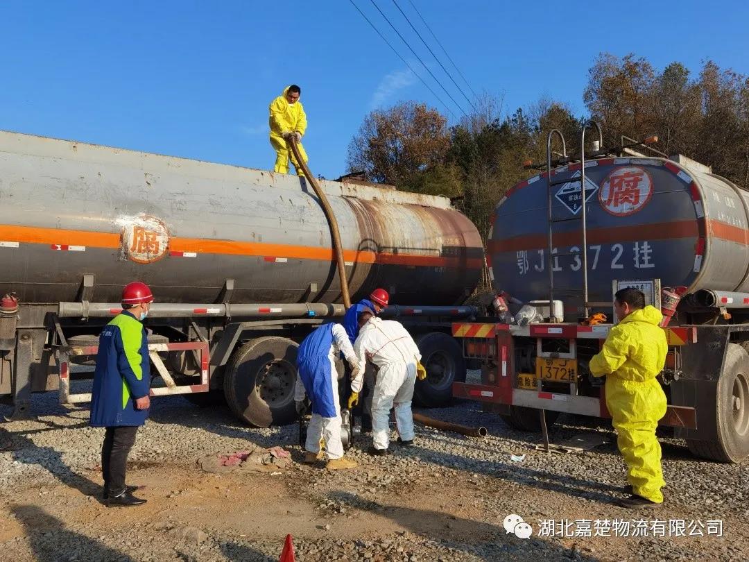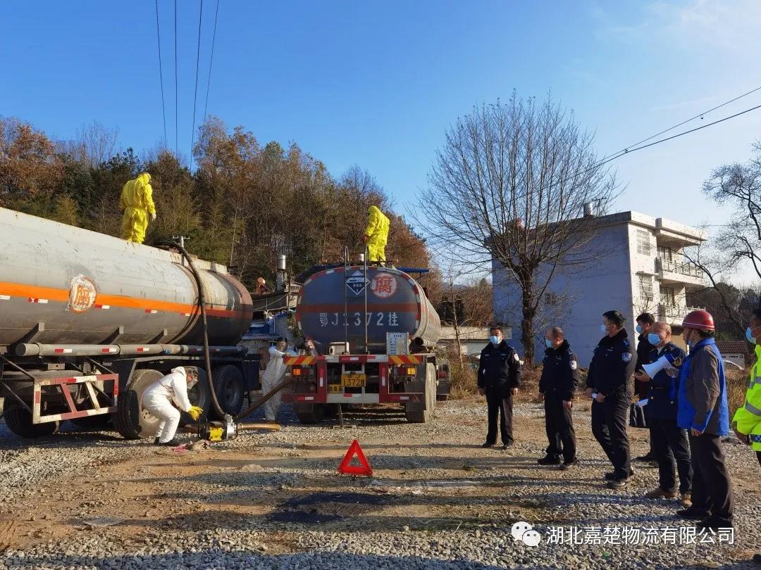 考試結束後,下(xià)午3時整,道路運輸應急救援演練開始。演練分兩項進行:一項爲模拟一台運輸危化品(8類)車輛因道路結冰滑入右側排水溝渠(駕駛員(yuán)和押運員(yuán)均未受傷,罐體未發生洩露),駕駛員(yuán)首先在事故車輛後方150米處設立安全警示标識,并當即向公司報告,公司迅速利用北鬥GPS4G動态監控平台,了解事故車輛具體位置等情況後,應急領導小組迅速召集救援隊員(yuán),調派運輸同類介質車輛,攜帶耐酸抽水泵、塑料管等救援工具,火(huǒ)速前往事發地點,按危化品應急救援操作流程和規範開展救援(倒罐)全過程。